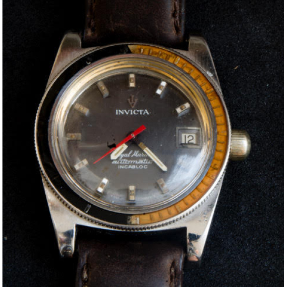 RELÓGIO INVICTA ROYAL MARINE AUTOMATIC INCABLOC 26943 EM AÇO.SWISS MADE COM DATA.FUNCIONANDO.CAIXA MEDE 34MM DE DIÂMETRO.PULSEIRA EM COURO FIVELA EM METAL BRANCO.NO ESTADO.