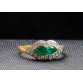 BELÍSSIMO ANEL COM PARECER GEMOLÓGICO .EM OURO AMARELO E BRANCO 18K CONTRASTADO COM DUAS ESMERALDAS EM GOTA E 20 BRILHANTES DE APROX 0,20 PONTOS TOTAL COR ENTRE " H e J" PARA A MAIORIA PUREZA " SI1,I1 ".PESO 4,4 GRAMAS ARO 20.ACOMPANHA PARECER 0984.Assista ao vídeo.