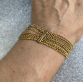 PULSEIRA FORMADA POR CORRENTES DE MINI ELOS PORTUGUESES QUE CONFEREM MOVIMENTO À PEÇA,EM OURO 18K.PESO 19,5 GRAMAS.MEDINDO 17,5CM ABERTA X 1,7CM.Assista ao vídeo.