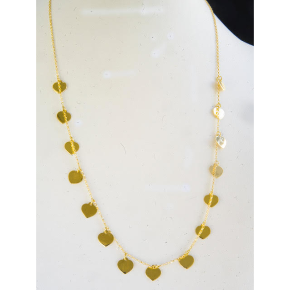 DELICADO COLAR COM PEQUENOS PINGENTES CORAÇÕES EM OURO 18K CONTRASTADO.PESO 3,7 GRAMAS.MEDINDO 44CM ABERTO.