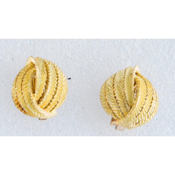 BELO PAR DE BRINCOS ANOS 50 EM OURO AMARELO 18K CONTRASTADO.PESO 22,4 GRAMAS MEDINDO 2,1CM X 2,1CM.FECHO DE PRESSÃO.