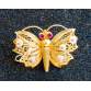 BROCHE BOTTON BORBOLETA CIRCA 1880 EM OURO 18K,SEIS PÉROLAS NATURAIS COM DOIS RUBIS SINTÉTICOS.PESO 5,5 GRAMAS. MEDINDO 3,3CM X 2,5CM.Faltam dois diamantes,gancho atrás em metal