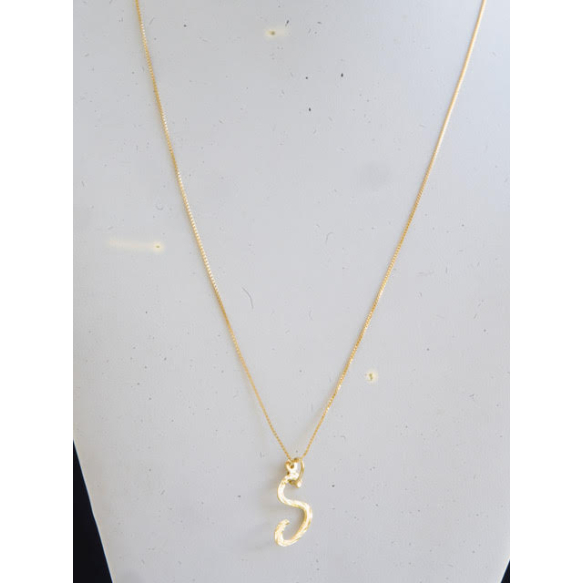 COLAR COM PINGENTE LETRA " S " EM OURO 18K CONTRASTADO.PESO 2 GRAMAS.COLAR MEDINDO 48,5CM ABERTO E O PINGENTE 1,7CM DE COMPRIMENTO.