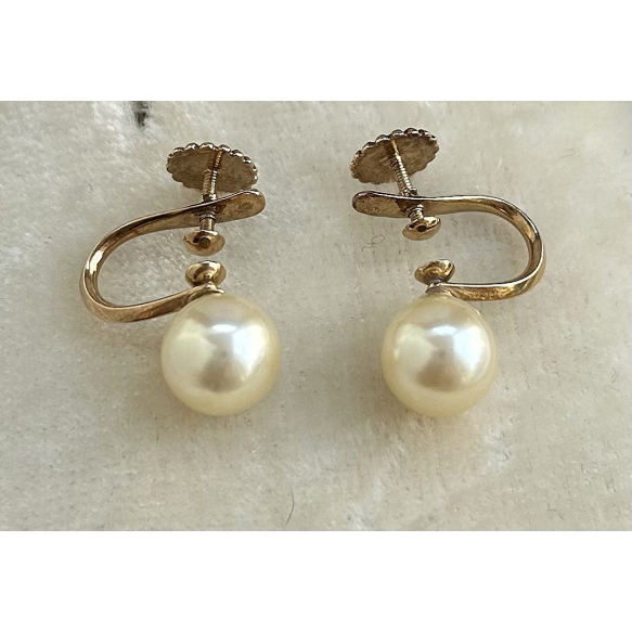 PAR DE BRINCOS EM OURO 14K COM PÉROLAS DE 7,9MM.PESO 3,8 GRAMAS MEDINDO 0,9CM.