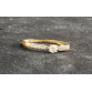 ANEL SOLITÁRIO EM OURO AMARELO 18K CONTRASTADO COM BRILHANTE FULL CUT MAIOR DE APROX 0,12 PONTOS + DOZE BRILHANTES FULL CUT MENORES DE APROX 0,12 PONTOS TOTAL.PESO 1 GRAMA ARO 14,5.