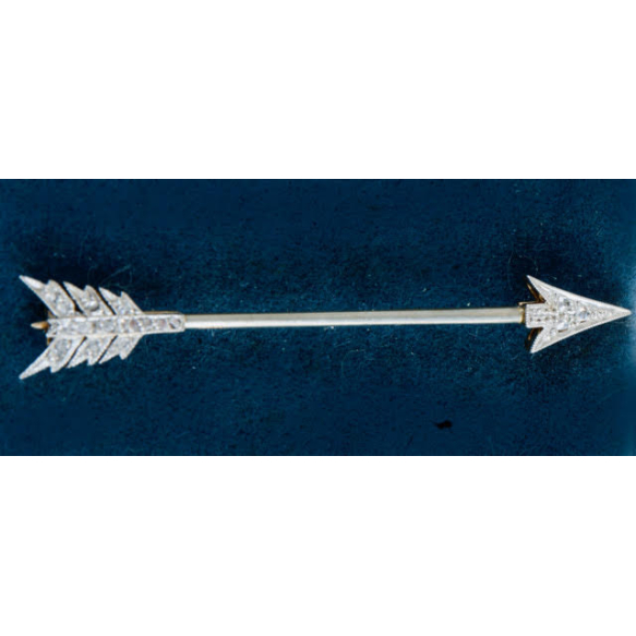 ALFINETE CIRCA 1930 DE GRAVATA REPRESENTANDO UMA FLECHA EM OURO 14K E PLATINA COM VINTE DIAMANTES ROSE CUT.PESO 1,8 GRAMAS MEDINDO 4,9CM DE COMPRIMENTO.