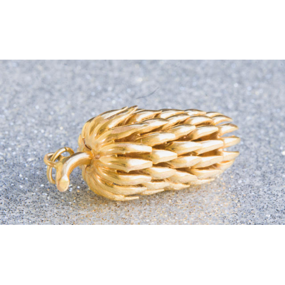 DIVERTIDO PINGENTE CACHO DE BANANAS EM OURO 18K 720,ARGOLINHA EM OURO 14K.PESO 3,6 GRAMAS MEDINDO 3,5CM DE COMPRIMENTO.Assista ao vídeo.