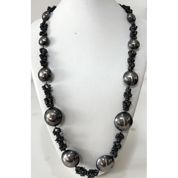 COLAR ANTIGO EM PRATA COM UM CONTRASTE.PESO 90,9 GRAMAS MEDINDO 64,5CM ABERTO.DETALHE MAIOR MEDINDO 2CM DE DIÂMETRO.