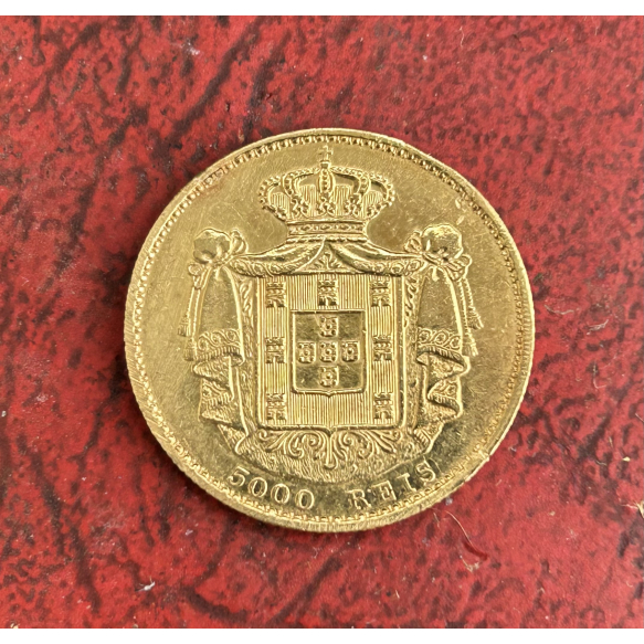 MOEDA 5 MIL RÉIS EM OURO 22K DE 1876.PESO 8,8 GRAMAS.ALGUMA IRREGULARIDADE NAS BORDAS.