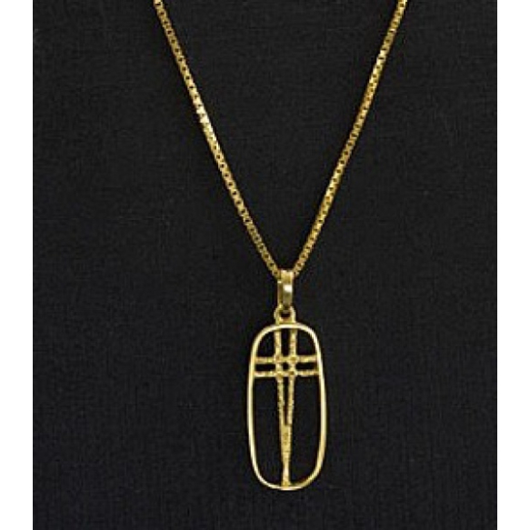 COLAR ITALIANO COM PINGENTE CRUZ VAZADA EM OURO AMARELO 18K CONTRASTADO.PESO 6,2 GRAMAS.COLAR MEDINDO 47,5CM ABERTO E O PINGENTE 2,8CM X 1CM.