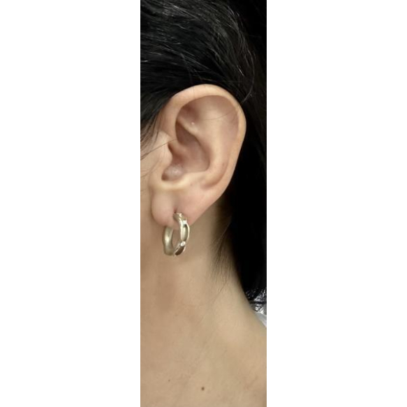 PAR DE ARGOLAS MACIÇAS EM OURO BRANCO 18K CONTRASTADO COM OITO BRILHANTES FULL CUT DE APROX 0,16 PONTOS TOTAL .PESO 8,5 GRAMAS MEDINDO 1,7CM DE DIÃMETRO.Falta um brilhante.
