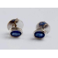 PAR DE BRINCOS EM OURO BRANCO 18K CONTRASTADO COM DUAS SAFIRAS AZUIS.PESO 2,7 GRAMAS MEDINDO 0,7CM X 0,5CM.Tarrachas diferentes.