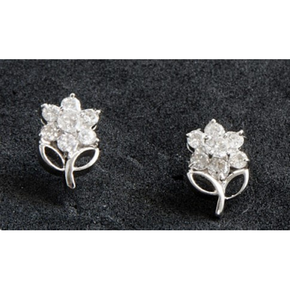 PAR DE BRINCOS DE ÓTIMA QUALIDADE, EM OURO BRANCO 18K CONTRASTADO COM 14 BRILHANTES FULL CUT DE APROX 0,56 PONTOS TOTAL COR "H I" PUREZA " VS ".PESO 2,9 GRAMAS MEDINDO 1,2CM.