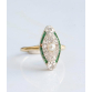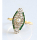 NESTE NÍVEL DE FINEZA, APARECE UM EM CADA DEZ ANOS.FINÍSSIMO ANEL ART DÉCO EM OURO 18K E PLATINA COM PÉROLA NATURAL,DOIS DIAMANTES CUSHION CUT DE APROX 0,30 PONTOS TOTAL,14 DIAMANTES DE APROX 0,28 PONTOS TOTAL E ESMERALDAS CALIBRÉ.PESO 3 GRAMAS ARO 17,5.BASE MEDE 1,8CM X 1CM.Falta uma esmeralda.