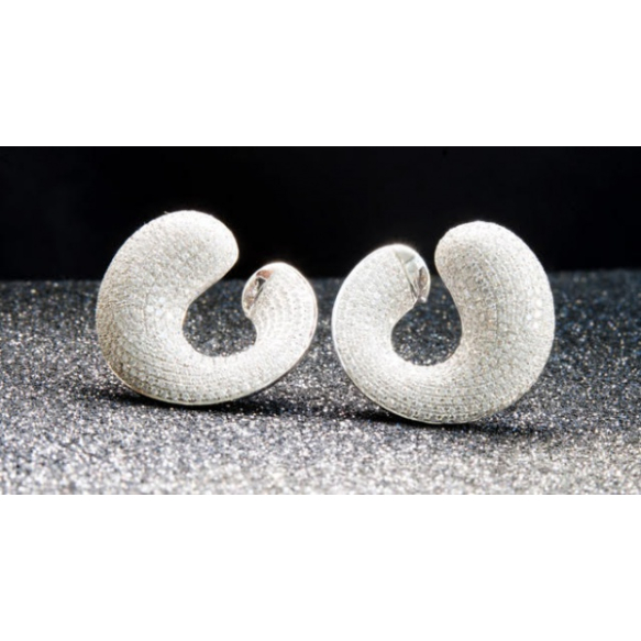 MAGNÍFICO PAR DE BRINCOS EM OURO BRANCO 18K CONTRASTADO COM PAVÊ DE APROX 1228 BRILHANTES DE APROX 9 QUILATES TOTAL COR " G H " PUREZA "VS , SI1". PESO 25,1 GRAMAS MEDINDO 3,1 CM X 2,9CM.FECHO DE PRESSÃO.