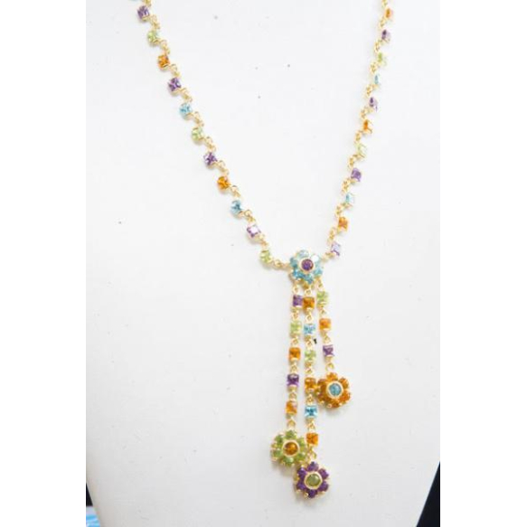 ALEGRE COLAR RAINBOW ITALIANO COM PINGENTE EM OURO AMARELO 18K CONTRASTADO COM PEDRAS BRASILEIRAS (AMETISTAS,CITRINOS,TOPÁZIOS AZUIS,PERIDOTOS).PESO 21,4 GRAMAS.COLAR MEDINDO 40CM ABERTO E OS PINGENTES 3CM,6,3CM E 4,5CM.