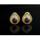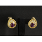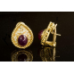 BELO PAR DE BRINCOS COM DOIS RUBIS CABOCHON DE APROX 2 QUILATES TOTAL RODEADOS POR 46 BRILHANTES FULL CUT DE APROX 2 QUILATES TOTAL. EM OURO AMARELO 18K CONTRASTADO + OUTRO CONTRASTE. PESO 11.7 GRAMAS MEDINDO 1.8 X 1.6CM. FECHO PINO COM CLIP.