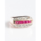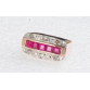 ANEL ANOS 40 EM OURO ROSÊ 18K COM DETALHE EM PLATINA COM CINCO DIAMANTES E RUBIS SINTÉTICOS.PESO 4,1 GRAMAS ARO 15.BASE MEDE 2CM X 1CM.Falta um diamante e dois estão quebrados.No estado.Não acompanha caixa da foto.