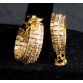 RICO MAS SÓBRIO.PAR DE BRINCOS DE ÓTIMA QUALIDADE EM OURO AMARELO 18K COM 114 DIAMANTES LAPIDAÇÃO CARRÉ E BAGUETES DE APROX 5,70 QUILATES TOTAL COR "G H I "PUREZA "VVS e VS ".PESO 21,8 GRAMAS,MEDINDO 2,8CM DE COMPRIMENTO.FECHO DE PRESSÃO.