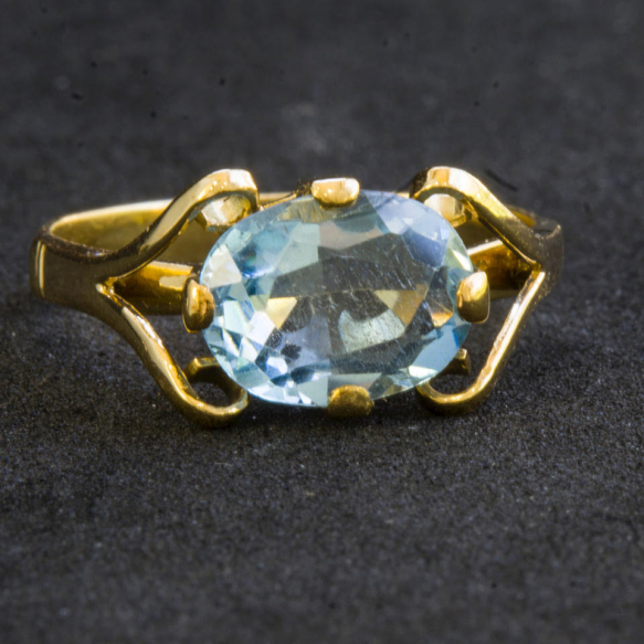ANEL EM OURO AMARELO 18K COM ÁGUA MARINHA DE COR INTENSA DE ÓTIMA QUALIDADE COM APROX 2,30 QUILATES.PESO 2,4 GRAMAS ARO 14.