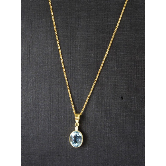 CORRENTE COM PINGENTE EM OURO AMARELO 18K CONTRASTADO,ÁGUA MARINHA E UM BRILHANTE.PESO 5,9 GRAMAS.CORRENTE MEDINDO 51CM ABERTA E O PINGENTE 2,2CM X 0,8CM.