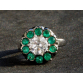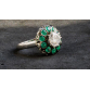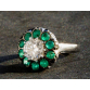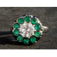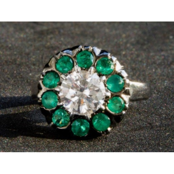 FABULOSO ANEL COM BRILHANTE FULL CUT DE APROX 1.70 QUILATES COR " G " PUREZA " I1" . RODEADO POR DEZ ESMERALDAS COLOMBIANAS DE COR INTENSA DA MELHOR QUALIDADE.EM OURO BRANCO 18K . PESO 7.5 GRAMAS ARO 18. BASE MEDE 1.5 CM DE DIÂMETRO.
