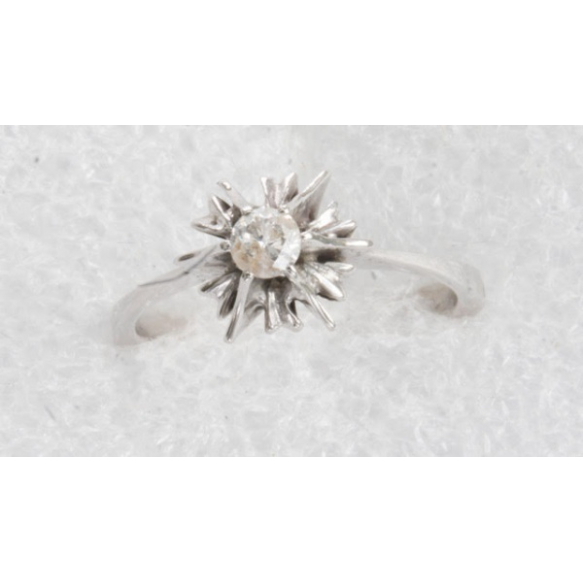 ANEL SOLITÁRIO EM METAL BRANCO COM UM BRILHANTE DE APROX 0,22 PONTOS.PESO 1,8 GRAMAS ARO 15.