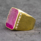 ANEL EM OURO AMARELO 18K COM RUBI E PEDRAS BRANCAS.PESO 15,7 GRAMAS ARO 15,5.BASE MEDE 1,9 X 1,4CM.