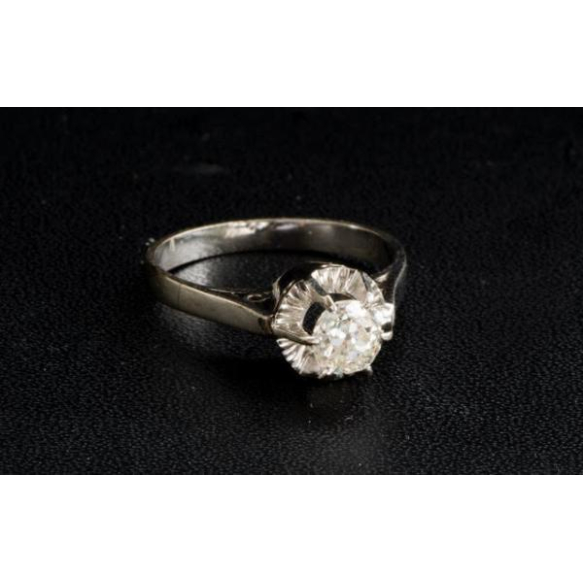 ANEL SOLITÁRIO EM PALÁDIO COM DIAMANTE CUSHION CUT DE APROX 0,60 PONTOS COR J PUREZA SI2.PESO 2,3 GRAMAS ARO 10,5( DEZ E MEIO ).