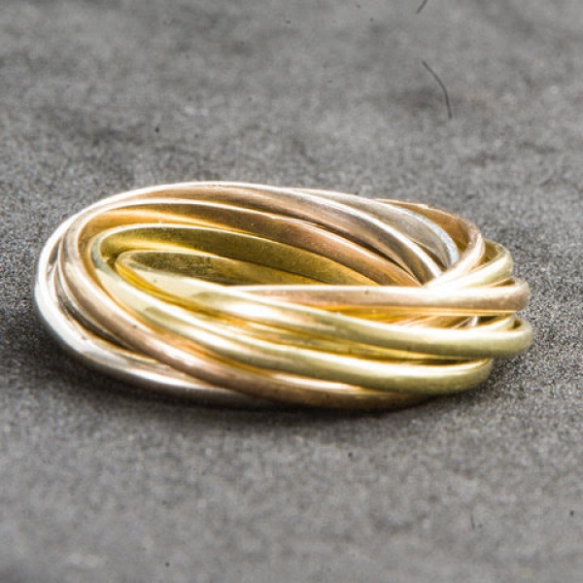 ANEL DE ONZE AROS EM OURO AMARELO E BRANCO 18K.PESO 9,3 GRAMAS ARO 13.
