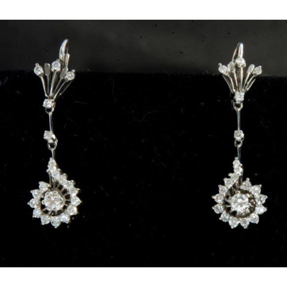 BELO PAR DE BRINCOS ART DÉCO EM OURO 18K COM APROX 1,26 QUILATES TOTAL DE BRILHANTES(DOIS BRILHANTES FULL CUT DE APROX 0,26 PONTOS TOTAL + 40 BRILHANTES 8X8 DE APROX 1 QUILATE TOTAL).PESO 5,9 GRAMAS MEDINDO 3,4CM DE COMPRIMENTO.