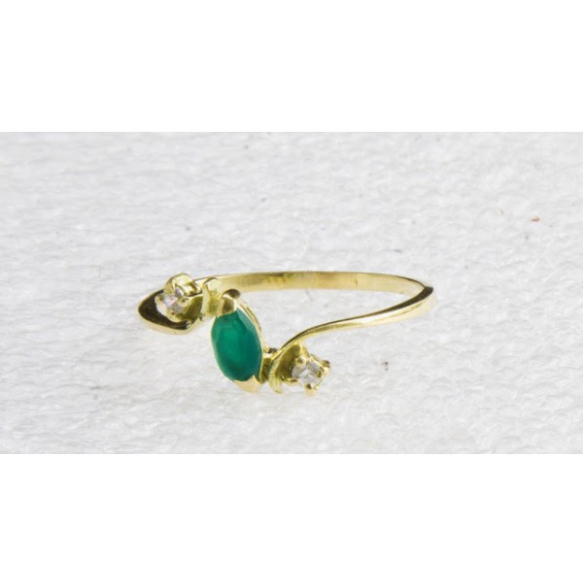 ANEL EM OURO AMARELO 18K COM DUAS PEDRAS BRANCAS E UMA PEDRA VERDE.PESO 1,7 GRAMAS ARO 18.