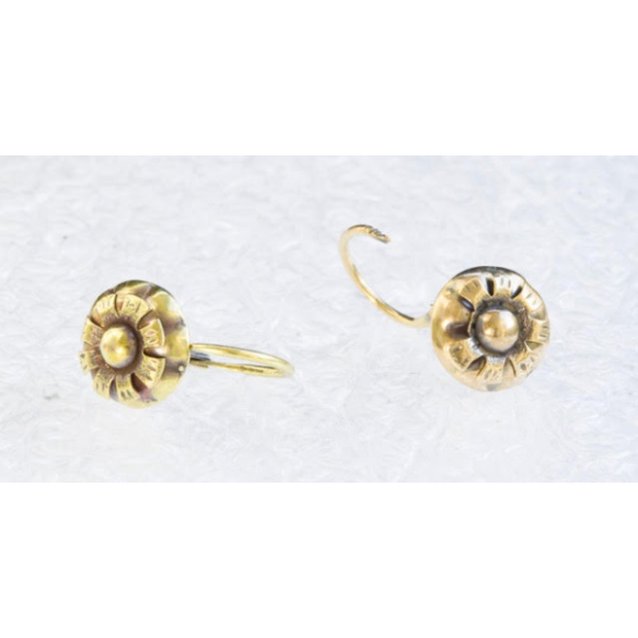PAR DE BRINCOS ANTIGOS EM OURO 14K.PESO 2,5 GRAMAS MEDINDO 1CM DE DIÂMETRO.