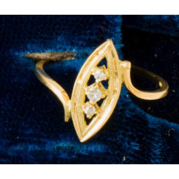 ANEL EM OURO AMARELO 18K CONTRASTADO COM TRÊS BRILHANTES 8X8.PESO 1,7 GRAMAS ARO 14,5.BASE MEDE 1,5CM DE COMPRIMENTO.