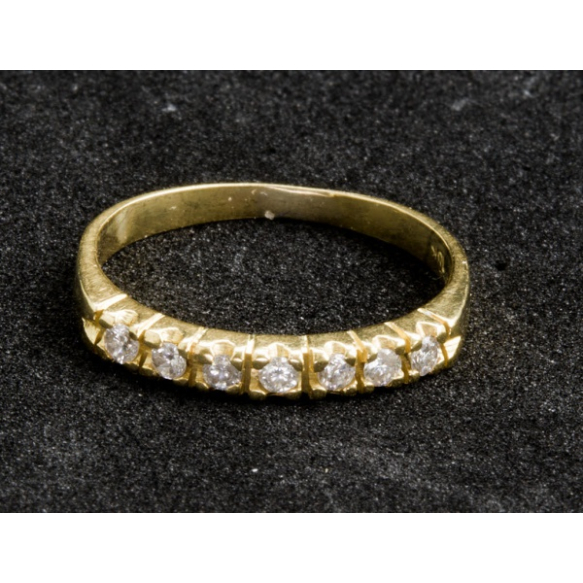 MEIA ALIANÇA EM OURO AMARELO 18K COM SETE BRILHANTES FULL CUT DE APROX 0,10 PONTOS TOTAL.PESO 2 GRAMAS ARO 10,5(DEZ E MEIO).