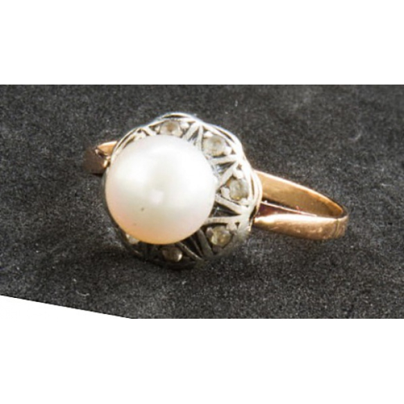 PÉROLA DE PELE BELÍSSIMA.ANEL ANTIGO EM OURO 18K,PRATA,PÉROLA DE 8MM E OITO DIAMANTES COM DESGASTE.PESO 3,1 GRAMAS ARO 22,5.BASE MEDE 1,2CM DE DIÂMETRO.