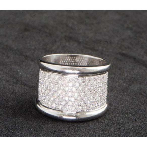 EspañolBRILHANTES DE EXCELENTE QUALIDADE COR G H .ANEL LARGO PORTUGUÊS EM OURO BRANCO 20K CONTRASTADO + OUTROS CONTRASTES COM PAVÊ DE 101 BRILHANTES FULL CUT DE APROX 2 QUILATES TOTAL.PESO 12,1 GRAMAS ARO 16,5.