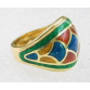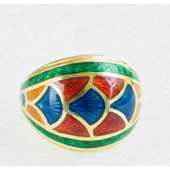 EspañolADQUIRIDO NA H.STERN COM ESTOJO.ANEL COM DESENHOS TURCOS EM ESMALTE COLORIDO EM OURO 18K CONTRASTADO + OUTROS CONTRASTES.PESO 9,2 GRAMAS ARO 16.