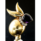 EspañolDIVERTIDO BROCHE COELHINHO DE GRANDE EXECUÇÃO EM OURO 18K COM AMETISTA E DETALHE EM PLATINA COM SEIS BRILHANTES 8X8 DE APROX 0,20 PONTOS TOTAL PESO 9,9 GRAMAS, MEDE 4,2 x 2,5CM