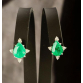 EspañolPAR DE BRINCOS EM OURO BRANCO 18K COM DUAS ESMERALDAS DE APROX 3.65 QUILATES TOTAL + OITO BRILHANTES DE APROX 0,33 PONTOS TOTAL .PESO 3.8 GRAMAS MEDINDO 1,5 X 1,3CM.Pedras diferem em cor e tamanho