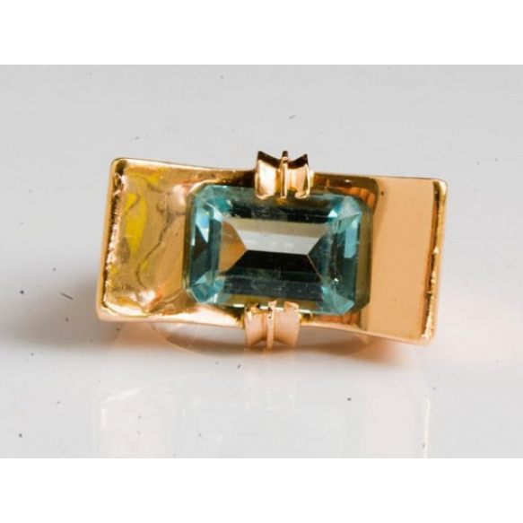 EspañolANEL ANOS 40 EM OURO ROSE 18K COM ÁGUA MARINHA DE COR INTENSA COM APROX 3,38 QUILATES.PESO 6,3 GRAMAS ARO 15.BASE MEDE 2,3CM X 1CM.
