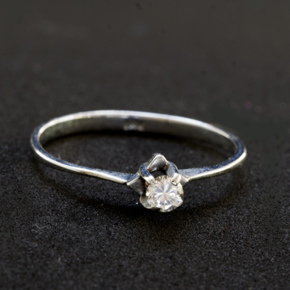 EspañolANEL SOLITÁRIO EM OURO BRANCO 18K COM BRILHANTE DE 0,13 PONTOS COR H I PUREZA SI1 . PESO 1,2 GRAMAS ARO 16.