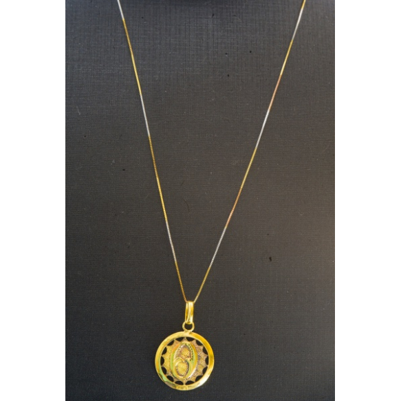 EspañolCOLAR EM OURO AMARELO E BRANCO 18K CONTRASTADO COM PINGENTE PORTUGUÊS EM OURO 20K COM VÁRIOS CONTRASTES.PESO TOTAL 2,4 GRAMAS.COLAR MEDINDO 50CM ABERTO E O PINGENTE 2,9CM DE COMPRIMENTO X 2CM DE DIÂMETRO.