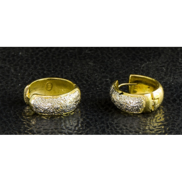 EspañolPAR DE ARGOLAS EM OURO AMARELO E BRANCO 18K CONTRASTADO .PESO 3,4 GRAMAS MEDINDO ,2CM DE DIÂMETRO,
