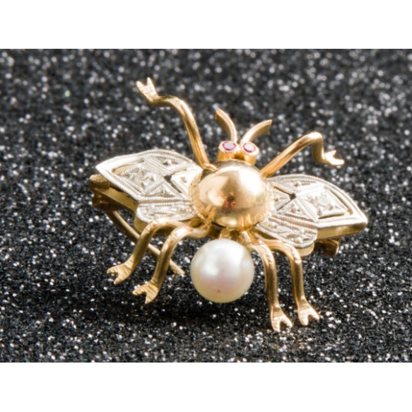 EspañolBROCHE ABELHA ANOS 50 EM OURO 18K,PLATINA,PÉROLA,DOIS BRILHANTES 8X8.PESO 3 GRAMAS MEDINDO 2,3CM X 1,8CM