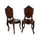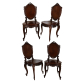 Conjunto de quatro cadeiras de madeira raiz de roseira lavrada ao estilo e época Liberty, compostas de pernas recurvas terminando com pés ditos pipe, frontão e saia entalhadas em volutas rockalhadas, encosto no formato medalhão e assento recortado. 46 cm de largura e 100 cm de altura - Peças comissionadas e provenientes da embaixada francesa em Roma. Século XIX
