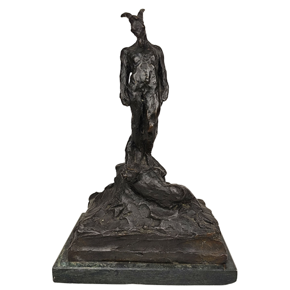 Príncipe Paolo Troubetzkoy (Verbania, Itália, 1866 - 1938) - atribuição Adoração do fauno - Escultura em bronze patinado, sobre base de mármore - 19 cm de comprimento por 13 cm de largura e 29 cm de altura - Resquícios de assinatura na lateral - Itália, período de transição dos séculos XIX e XX. (Apresentando fissura com perda de material)