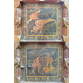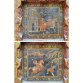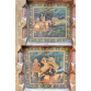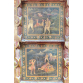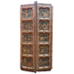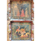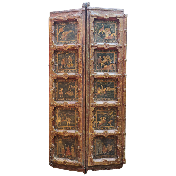 Porta Indiana antiga sec. XIX, região Gujarat, Madeira Teca e ferro, originalmente operava com pino e poste, não dobradiças. Pintura especial Mughal clássico, com arcos mihrab esculpidos e painéis jali, com imagens de caçadas em cada um dos quadros - 42 x 175 cm alt cada