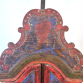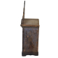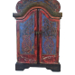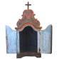 Oratório popular rústico. MINAS GERAIS, século XIX. Sucessivas pátinas e camadas. Encerado. Figurações: par de vasos de flores, coração no frontão de tabela recortada, encimado por crucifixo. Teto em três caídas. Interior azul celeste. Medidas: 85 x 40 x 27,5 cm. PESO: 5,000 KG