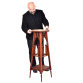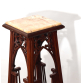 Antiga coluna de estilo e época ART NOUVEAU (1890-1910). Madeira de Peroba. Quatro faces em gradil, painéis ogivais, galerias vazadas em volutas e folhagens. platô inferior em madeira e topo sobreposto por mármore. Pés torneados. MEDIDAS: 112 x 26 x 26 cm. Peso: 12 kg.